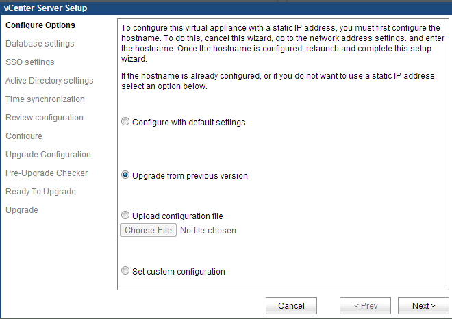 Although the issue about having to take this path is the requirement to have enough storage space for a second VCA and also another spare IP address which could be used temporarily until the upgrade wizard completes the sync of the old config. Fortunately I have DHCP running so the new VCA picked up an IP without me having to go into the console and configure the network! =)