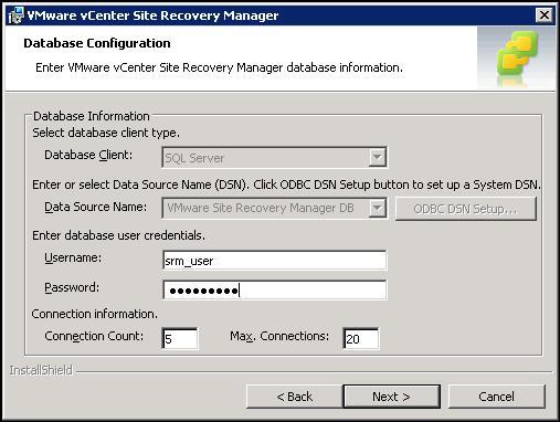However, if you’re not running 5.1 or later then you will need to create a 64bit ODBC system DSN (SRM 5.0.x used a 32bit ODBC DSN). Any deployment of SRM earlier than 5.0 will require a two-step upgrade, first to 5.0.x then to 5.5.