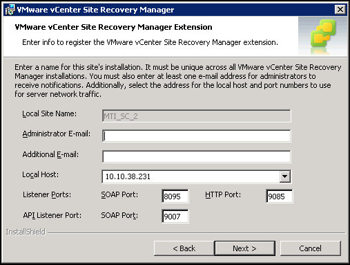 9. Enter an administrator’s email address in order to obtain SRM generated alerts.