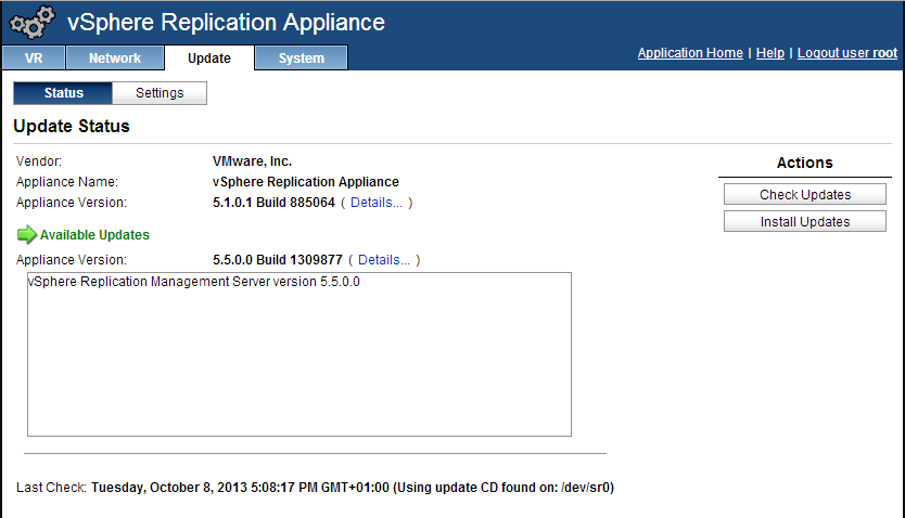 So after updating my vCenter Server Appliance to 5.5, the next obvious choice was to update Site Recovery Manager and the vSphere Replication Appliance.