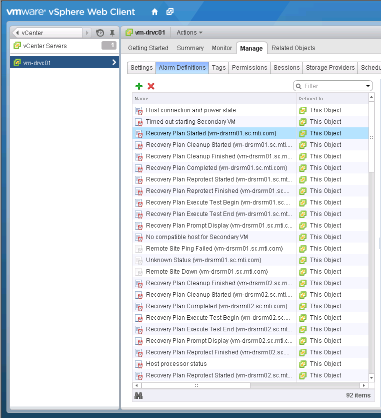 Did you ever find the alarm definitions? I just did a fresh install of SRM 5.8 and it doesn’t seem to add them to the definition list. I did not see a KB article on the VMware site on any bugs or anything.
