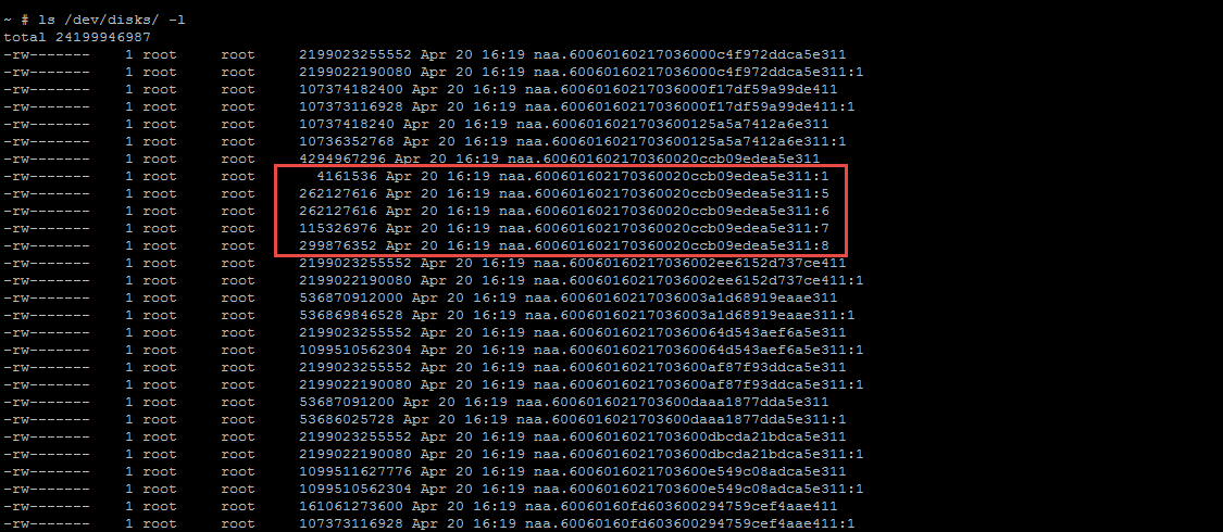 Usually the coredump partition is configured on the boot device. We now need to find the boot device and the diagnostic partition. Run the following command to list all the storage devices attached to the host.